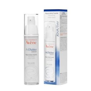 Avène a-oxitive jour Aqua crème, ayant une texture aqua gélifiée riche en Vitamine C et E. Elle protège du stress oxydatif quotidien environnemental et préserve des méfaits de la pollution tout en illuminant le teint et en adoucissant la peau.