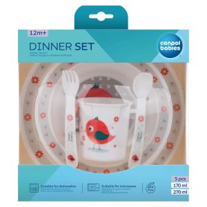Le CANPOL BABIES Set Repas Oiseau est un kit de vaisselle complet et sûr, idéal pour accompagner les enfants dès 1 an dans leur découverte des repas autonomes. Pratique grâce à sa compatibilité lave-vaisselle et micro-ondes et sécurisant par l’absence de BPA, il allie fonctionnalité et design ludique.