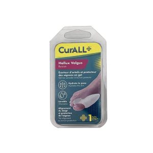 Dites adieu aux douleurs d’hallux valgus avec le gel écarteur d’orteils et protecteur d’oignons CURALL Hallux Valgus. Soulagement de la douleur et des frottements, protection contre les agressions extérieures, correction du positionnement du gros orteil, confort et discrétion. CURALL Hallux Valgus a tout pour vous aider à retrouver des pieds en pleine santé.