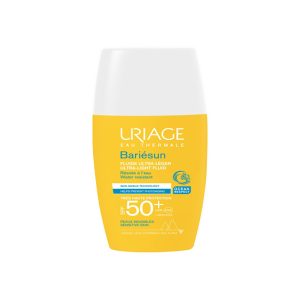 Uriage Bariésun Fluide Ultra-Léger SPF50+ Crème solaire pour visage Pour peaux sensibles Protège des rayons solaires Résiste à l’eau, aux frottements Complexe de filtres UVA-UVB Vitamines C, Vitamines E Fini sec, sans effet blanc Contenance 30 ml