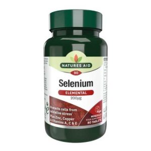 Natures Aid® Selenium fournit 200 µg de sélénium en combinaison avec les vitamines A, C et E plus le zinc. Le sélénium contribue à: la spermatogenèse normale, au maintien des cheveux et des ongles normaux, au fonctionnement normal du système immunitaire et à la fonction thyroïdienne normale.