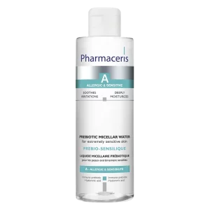 PHARMACERIS A PREBIO-SENSILIQUE – Liquide Micellaire Prébiotique 190ML est une lotion qui permet de nettoyer et démaquiller les yeux sensibles et les peaux hypersensibles sujettes aux allergies. Elle est destinée à tous les types et tous les ages et aux porteurs de lentilles de contact.