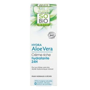 Cette crème de jour apportera confort intense et hydratation pendant 24h aux peaux sèches et sensibles. Sa forte teneur en aloe vera associé à la glycérine végétale et au beurre de karité est idéale pour les peaux desséchées. Sa texture riche et douce enveloppe et protège les peaux sèches et sensibles.