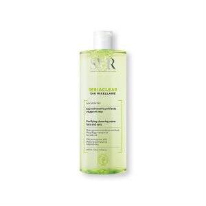 SVR SEBIACLEAR EAU MICELLAIRE Nettoyante purifiante & matifiante Peaux sensibles, acnéiques Nettoie en douceur Elimine les impuretés Ne dessèche pas la peau Régule l’excès de sébum Contenance 400 ml