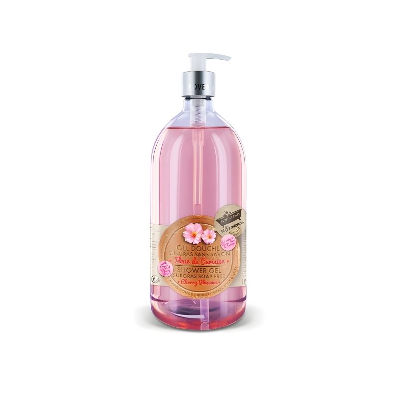 Gel douche F.Cerisier 1L Marque Bain de Provence Parfum délicat Format économique Douceur pour la peau Fabriqué en Provence Convient à toute la famille Nettoie en profondeur