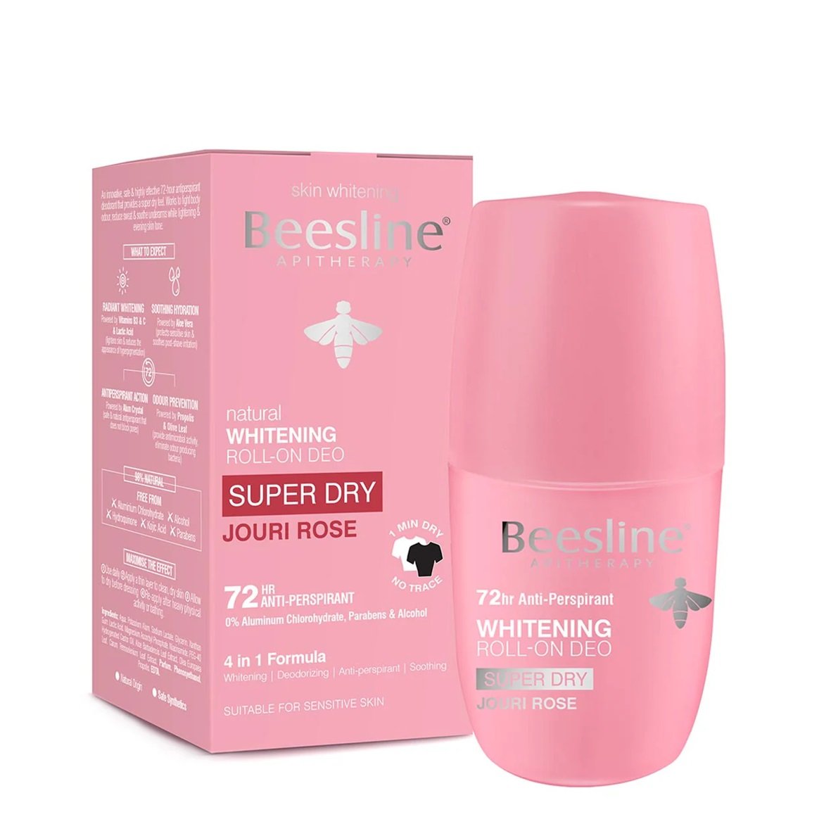 Le déodorant roll-on BEESLINE Super Dry Jouri Rose assure une protection longue durée jusqu’à 72 heures tout en offrant une sensation ultra-sèche et fraîche. Spécialement formulé pour combattre les odeurs désagréables, il absorbe la transpiration et apaise la peau, tout en contribuant à éclaircir et unifier la couleur des aisselles.