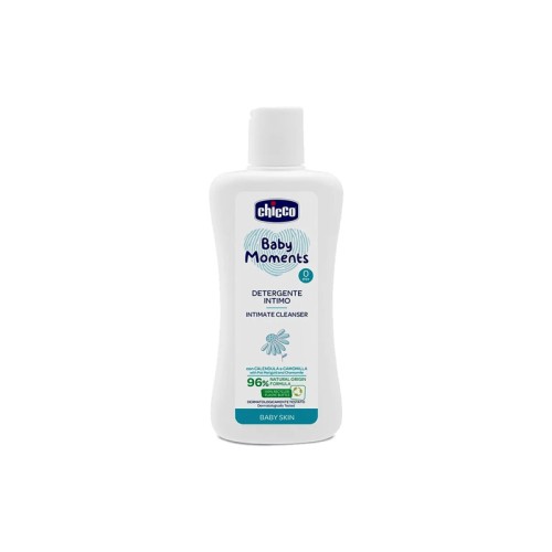 Formulé avec 96% d’ingrédients d’origine naturelle, le nettoyant intime de la ligne Chicco Baby Moments est enrichi en extrait de calendula et de camomille.