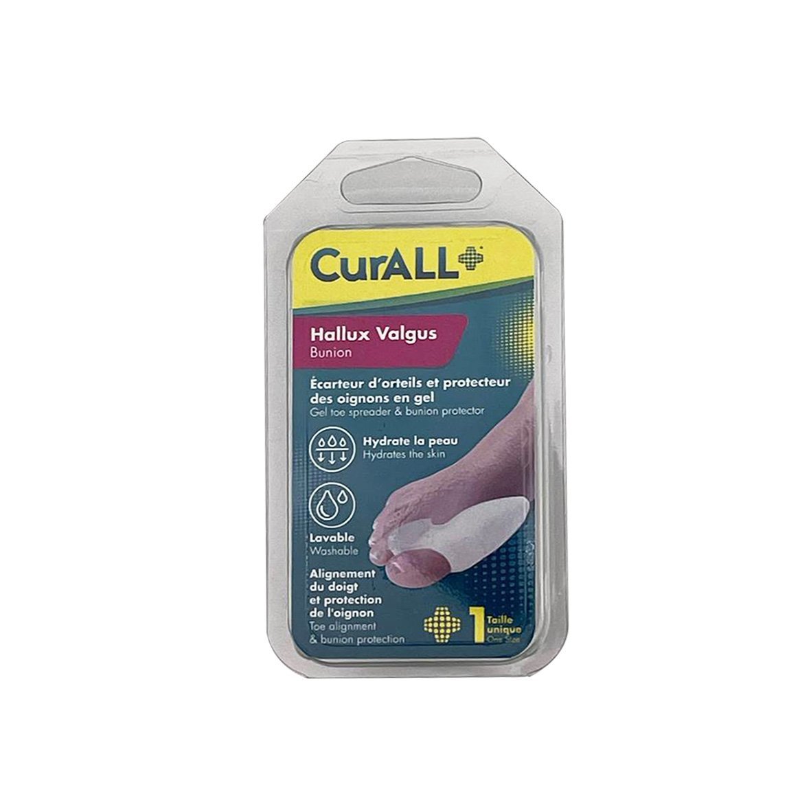 Dites adieu aux douleurs d’hallux valgus avec le gel écarteur d’orteils et protecteur d’oignons CURALL Hallux Valgus. Soulagement de la douleur et des frottements, protection contre les agressions extérieures, correction du positionnement du gros orteil, confort et discrétion. CURALL Hallux Valgus a tout pour vous aider à retrouver des pieds en pleine santé.