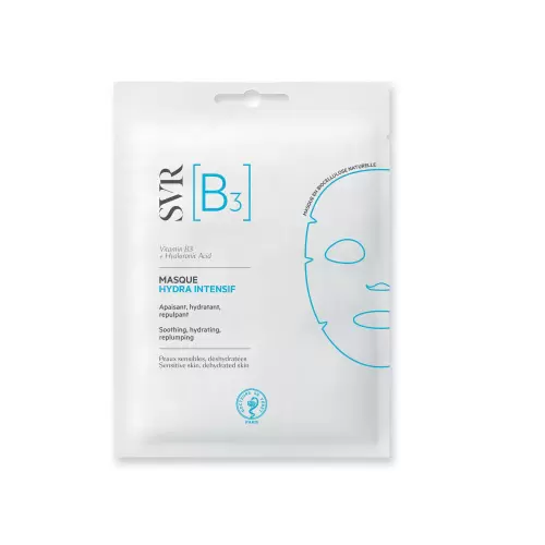 Ce masque en biocellulose contient une forte concentration de sérum repulpant à l’acide hyaluronique et à la vitamine B3.