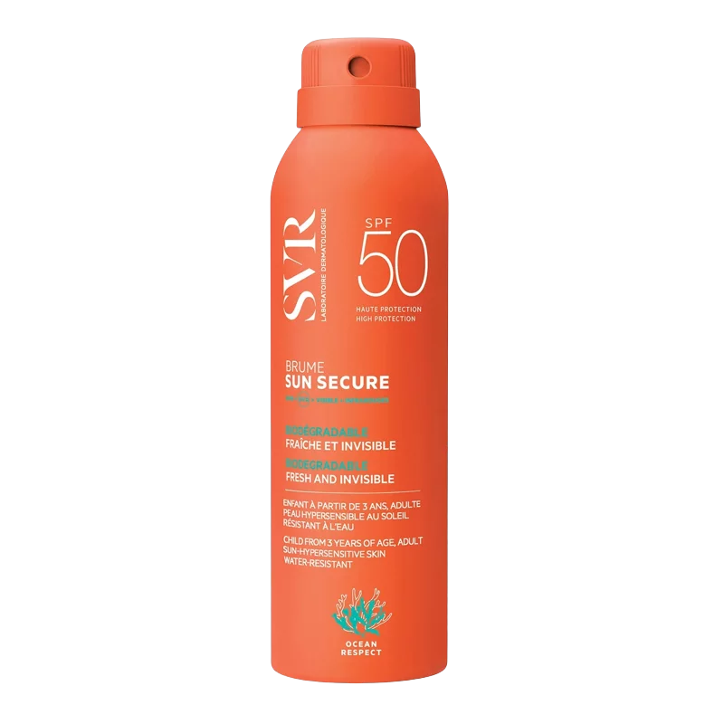 SVR Sun Secure Brume fraîche invisible Peaux hypersensibles au soleil Enfant à partir de 3 ans, adulte Absorption rapide, fini non gras SPF50+ UVB + UVA 200ml