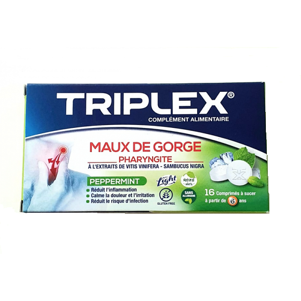 TRIPLEX MAUX DE GORGE PEPPERMINT 16 COMPRIMES