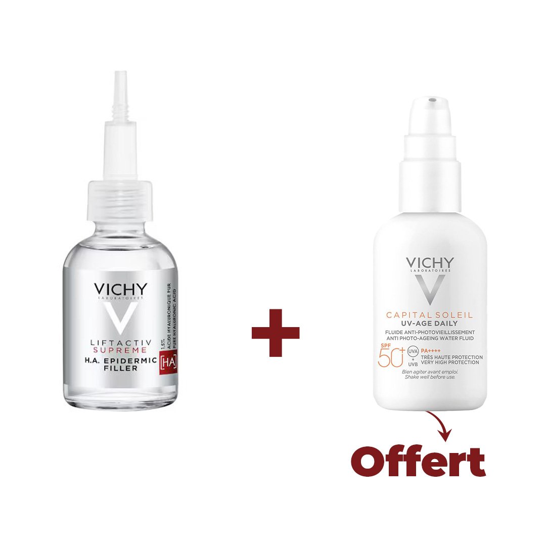 Offrez à votre peau le meilleur de la science et du soleil avec ce duo exceptionnel : le sérum VICHY LIFTACTIV SUPREME HA et le soin solaire Capital Soleil UV-Age Daily, OFFERT pour une routine anti-âge complète et efficace.